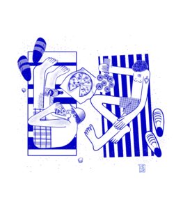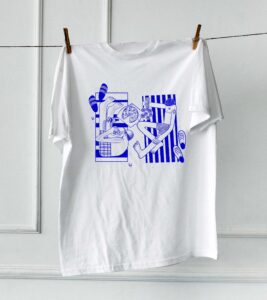 Tshirt illustrata con tipi da spiaggia pugliesi.